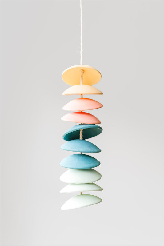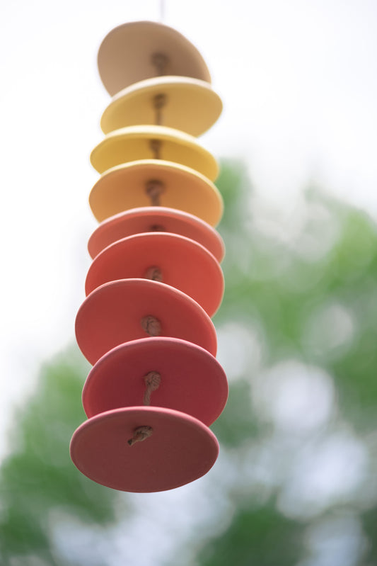 Ceramic chimes in light yellow, coral, teal, seafoam